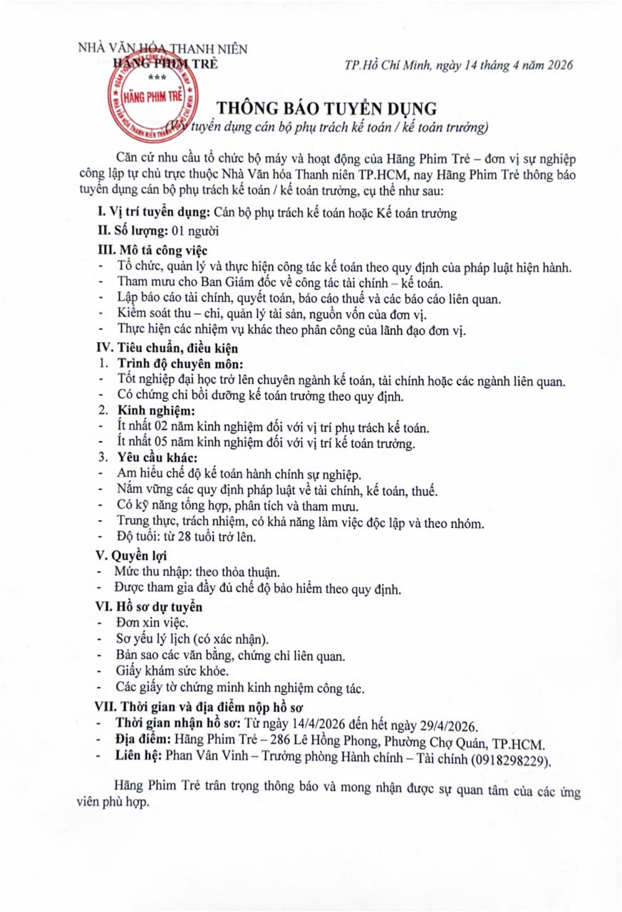 ⏰ Thời hạn nhận hồ sơ: đến hết ngày 29/04/2026