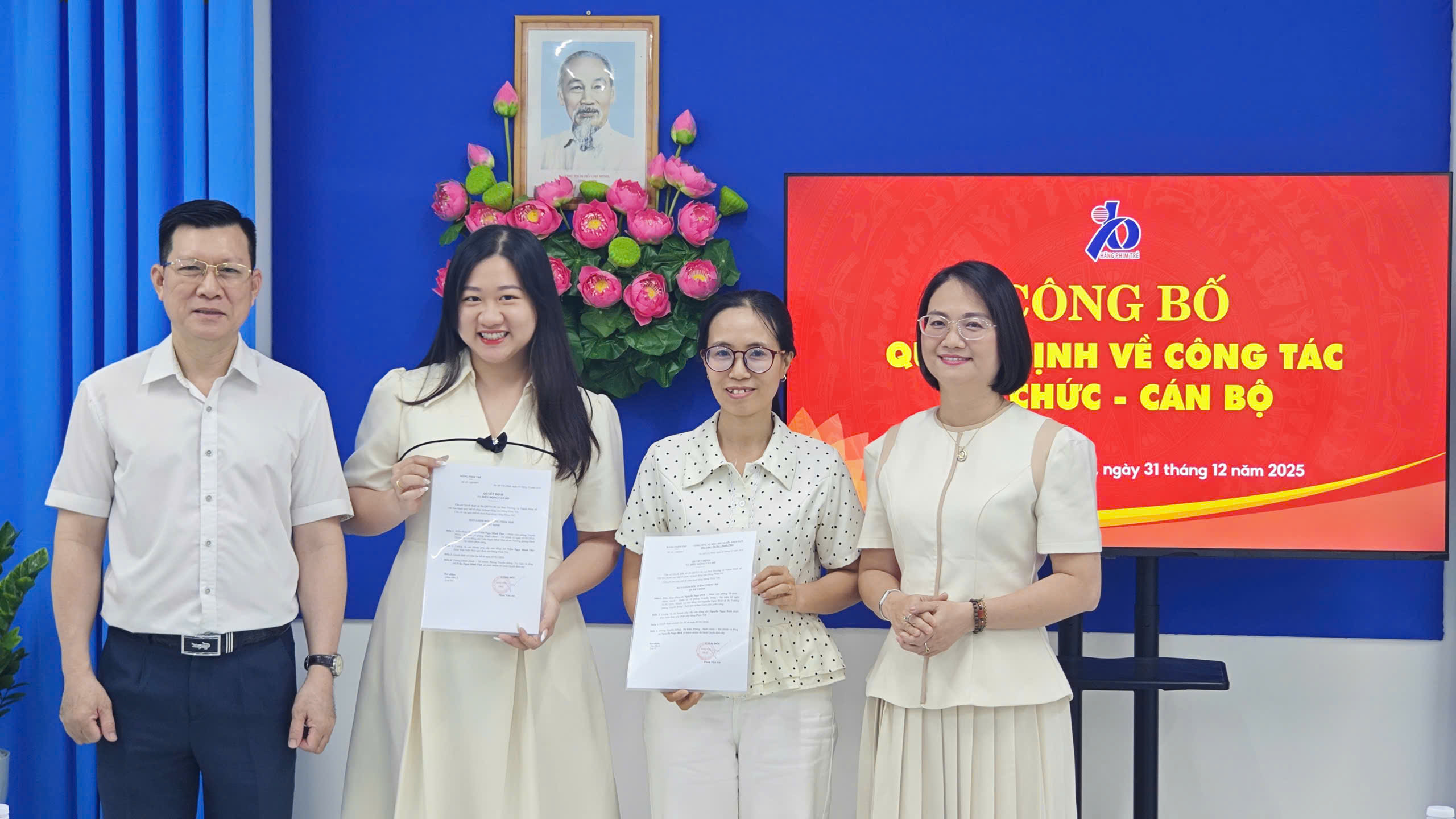 Hãng Phim Trẻ vừa tổ chức công bố các quyết định quan trọng về công tác tổ chức và cán bộ, đánh dấu một bước tiến mới trong hành trình phát triển của công ty vào năm 2026. Buổi lễ diễn ra trong không khí trang trọng nhưng ấm áp, thể hiện tinh thần đoàn kết và sáng tạo của đội ngũ nhân viên.